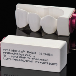 priti®multibloc ZrO2 High Translucent, (5Y-TZP), cubic zirconia, – multicolor, in 3 Farbverläufen, L 40 mm x B 19 mm x H 15,5 mm